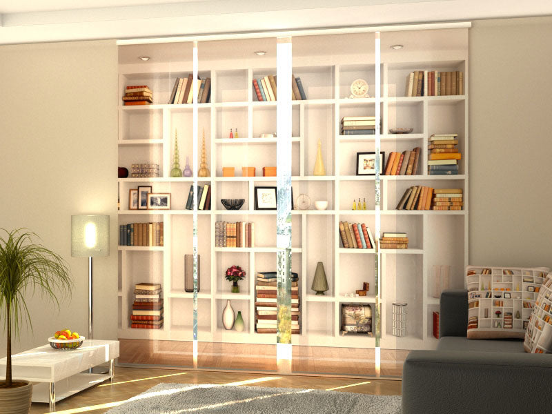 Tenda a pannelli LIBRERIA BIANCA MODERNA| Tenda decorativa con pannelli scorrevoli