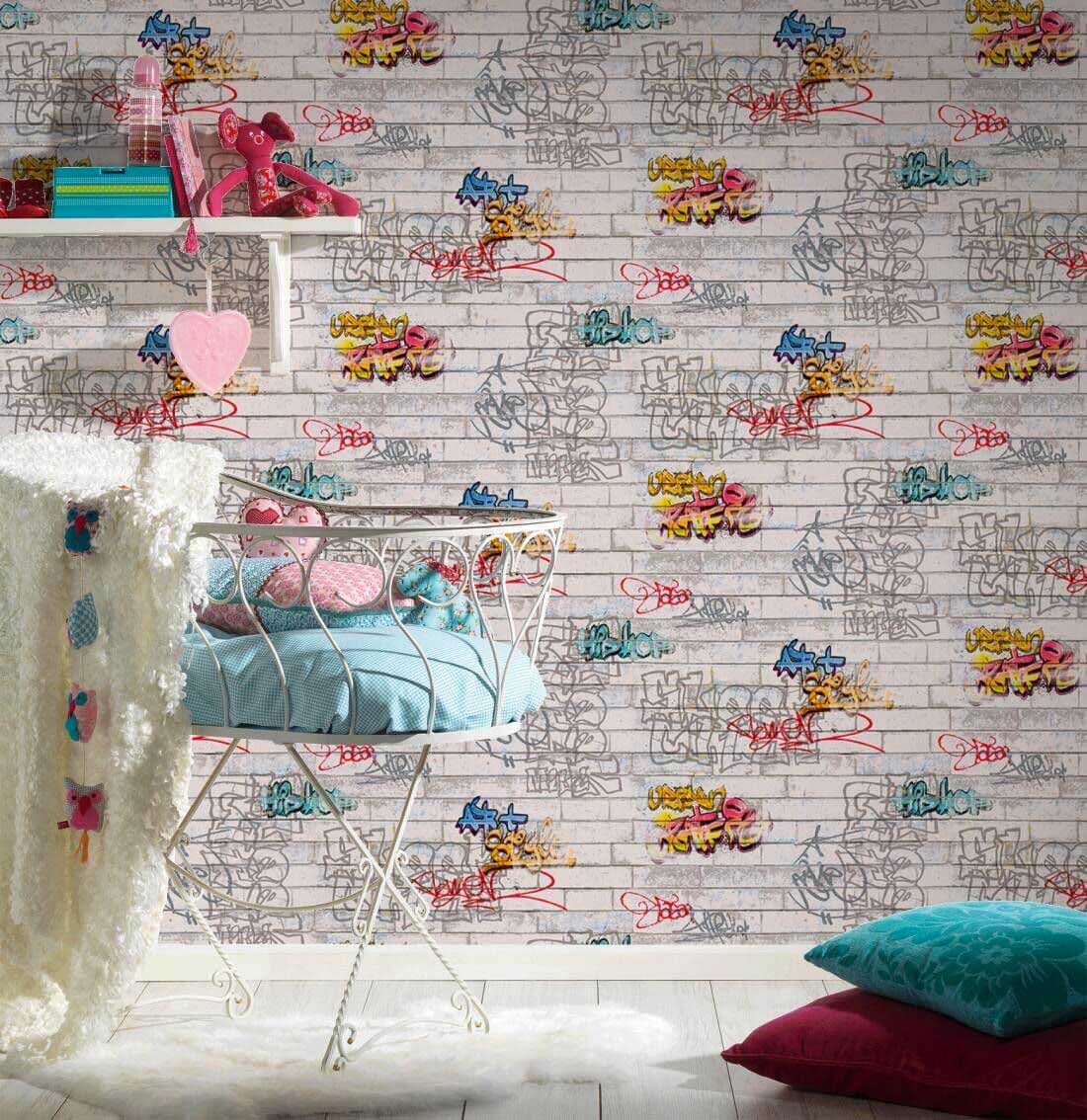Carta da parati mattoni Graffiti Urbani in rotolo, stile urbano per camerette moderne